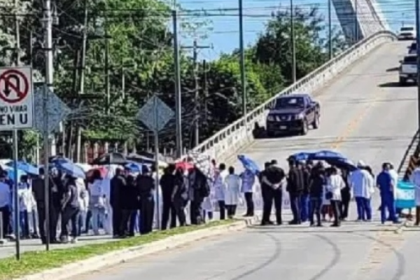 La movilización no fue simbólica. Los galenos caminaron desde el centro asistencial hasta el sector del puente El Merendón, uno de los puntos clave de la ciudad, donde decidieron bloquear el paso vehicular. La acción, directa y visible, buscó enviar un mensaje claro: el conflicto sigue abierto.